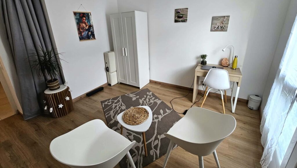 Je vous accueille au cabinet, 15 allée de la compagnie des Tramways à Aix-les-bains (proche du centre-ville), ou en visio selon vos besoins.